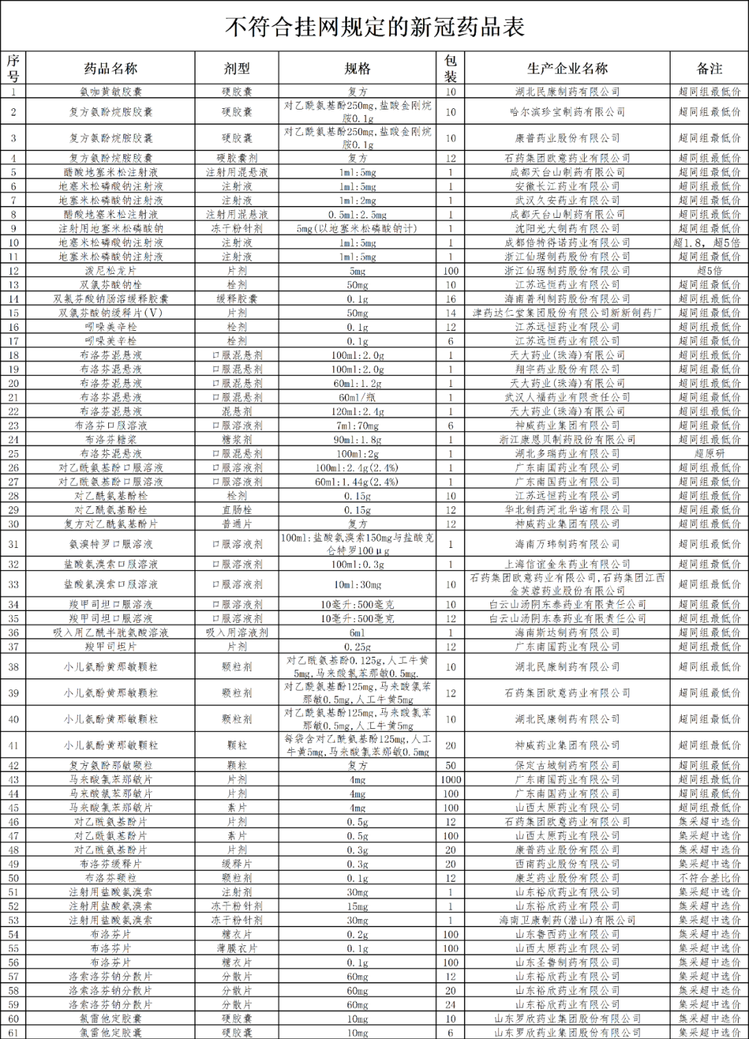 附件:不符合挂网规定的新冠药品表