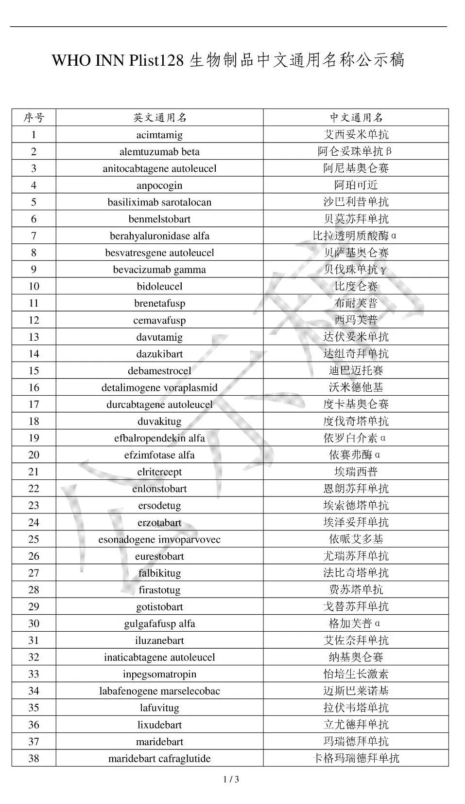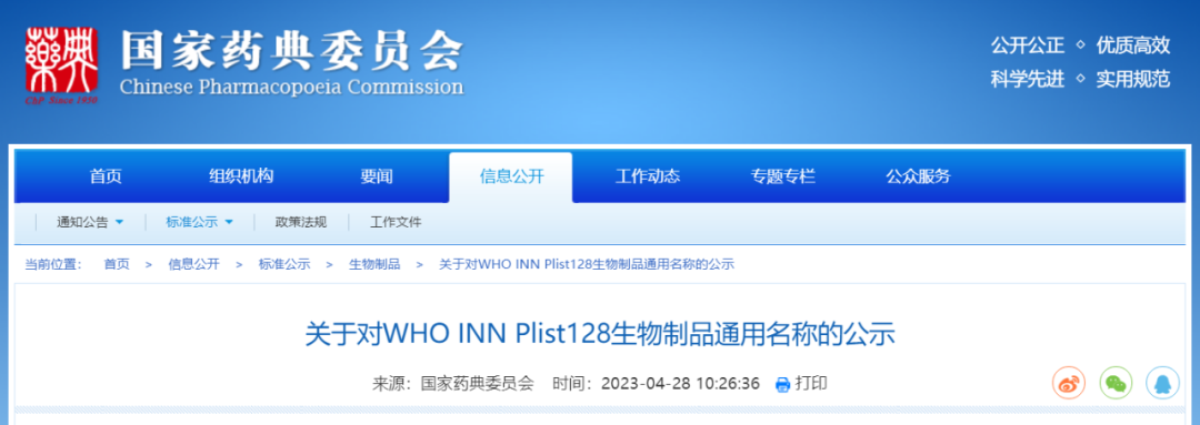 4月28日,国家药典委发布关于对WHO INN Plist128生物制品通用名称的公示。
