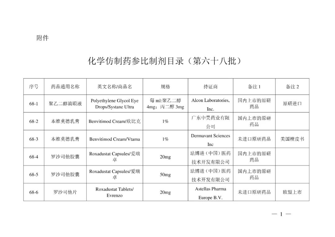 附件:化学仿制药参比制剂目录(第六十八批)