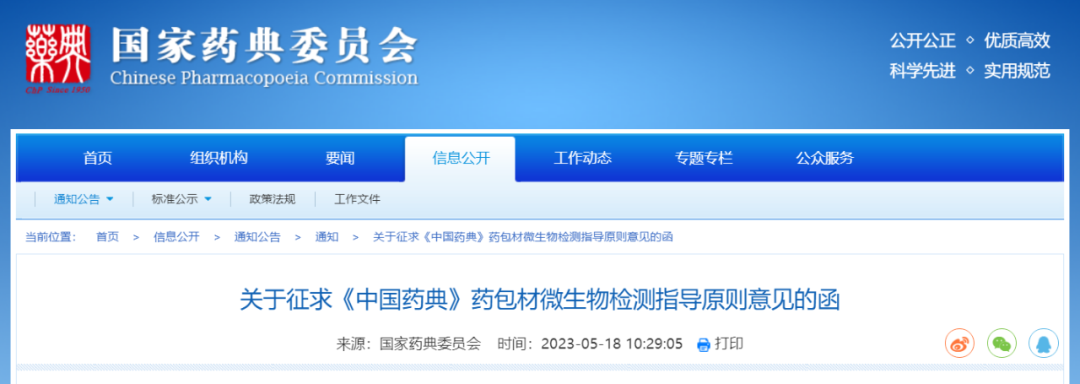 5月18日,国家药典委《中国药典》药包材微生物检测指导原则征求意见。