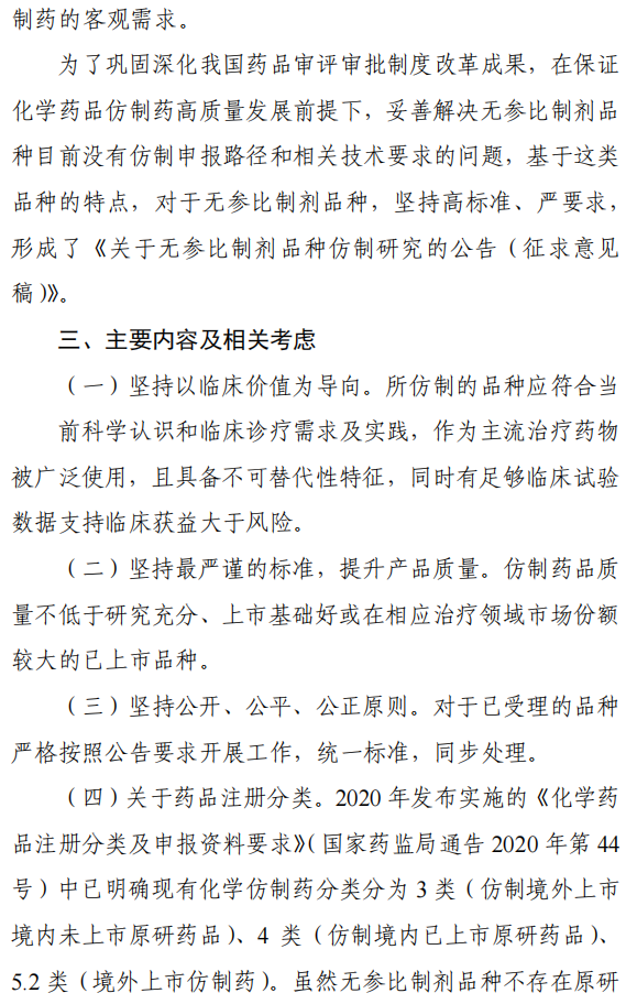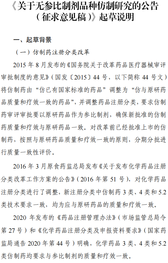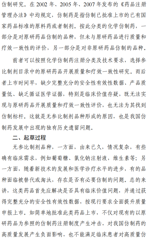 2. 《关于无参比制剂品种仿制研究的公告(征求意见稿)》起草说明