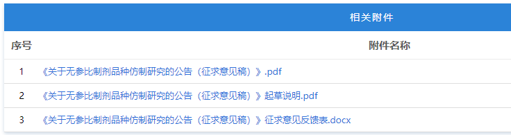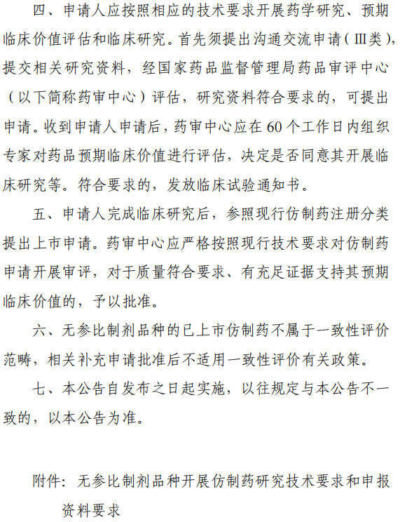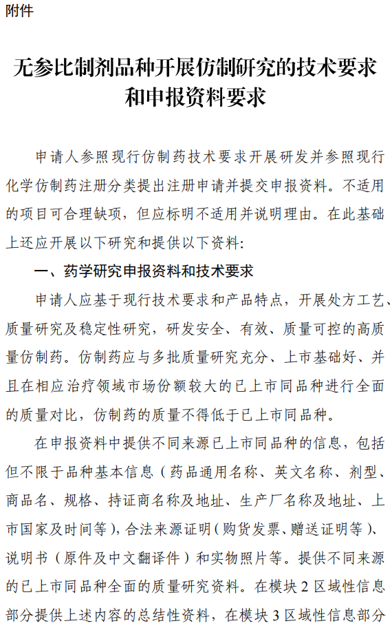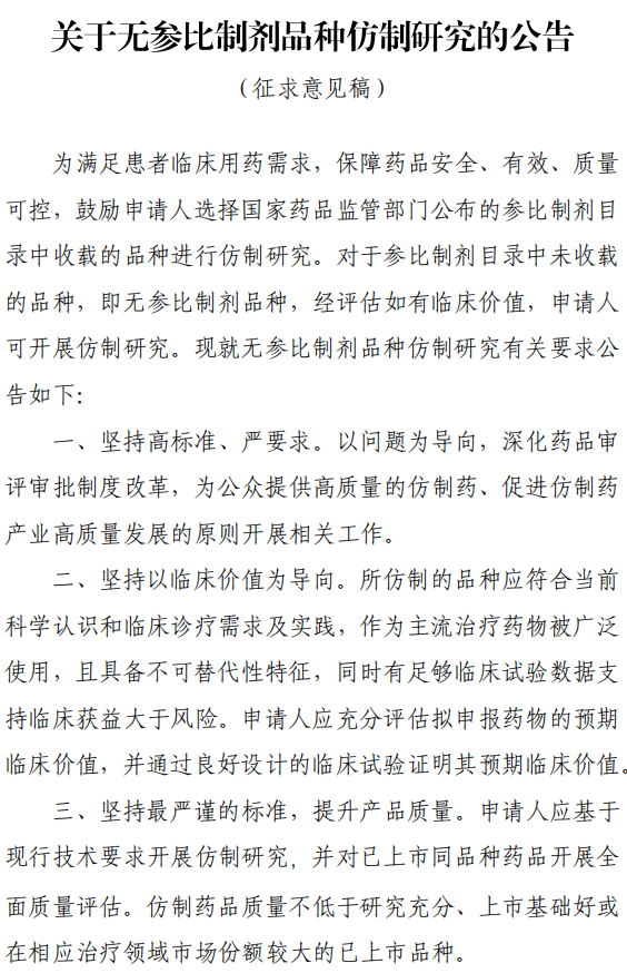 1. 《关于无参比制剂品种仿制研究的公告(征求意见稿)》