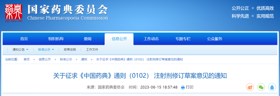 6月15日,国家药典委发布关于征求《中国药典》通则(0102) 注射剂修订草案意见的通知,公开征求意见自发布之日起1个月。