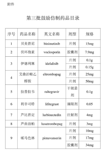 附件:第三批鼓励仿制药品目录