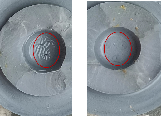 (放大10倍,左侧为覆膜胶塞,右侧为非覆膜胶塞)