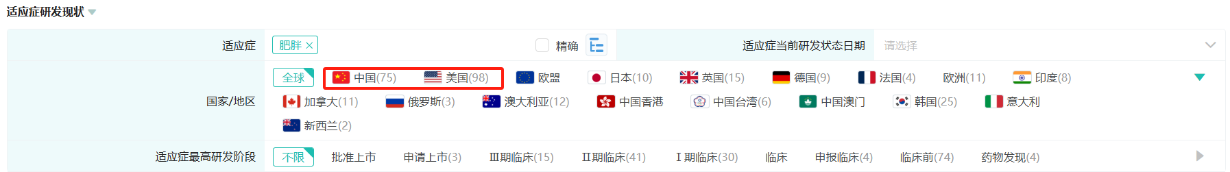 全球在研的GLP-1创新药,合计558款,其中有减肥适应症布局的共计230款,其中中国占了75款,而美国是98款,排一二位,数量上已经接近美国。