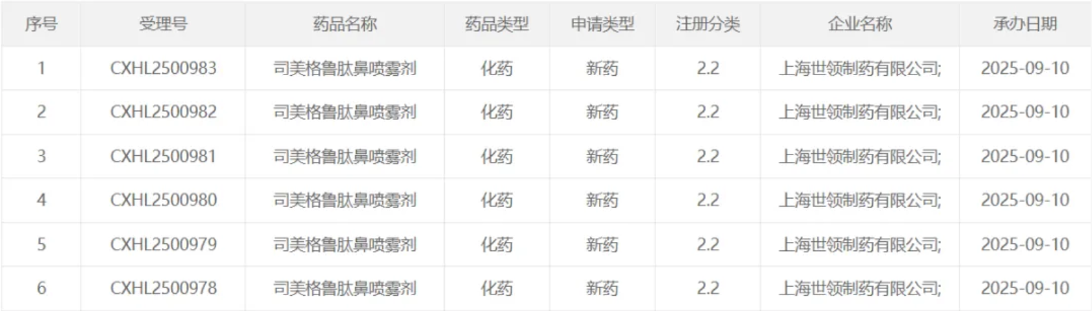除了仿制,国内司美格鲁肽也已经卷到了新剂型改良,包括吸入、含服甚至贴剂等,其中上海世领制药自主研发的司美格鲁肽鼻喷剂已申报临床,目前是全球进度最快的一款改良鼻喷。