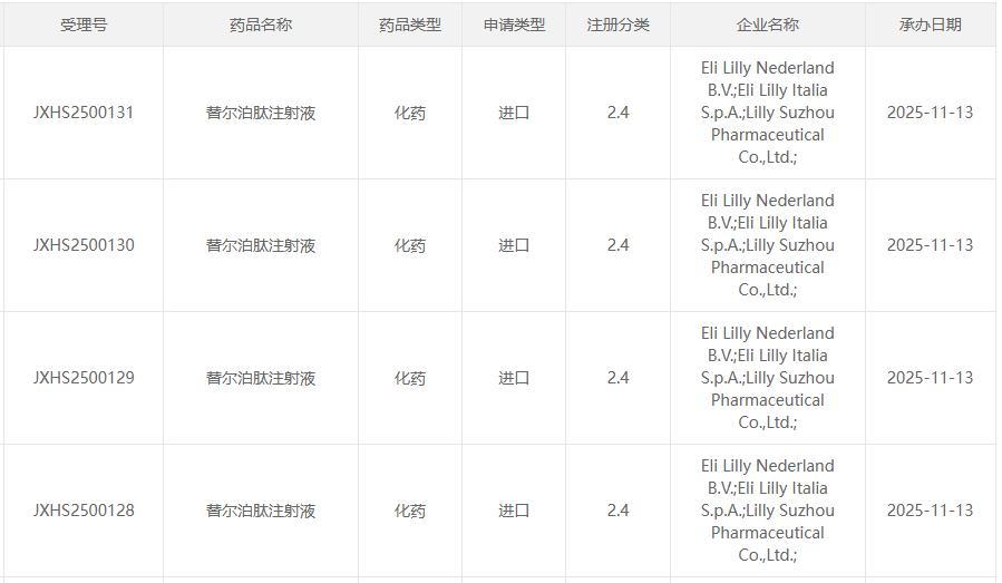 11月13日,据CDE官网最新显示,礼来的替尔泊肽新适应症上市申请获受理。