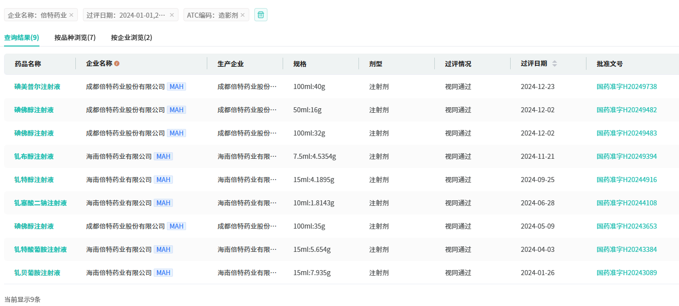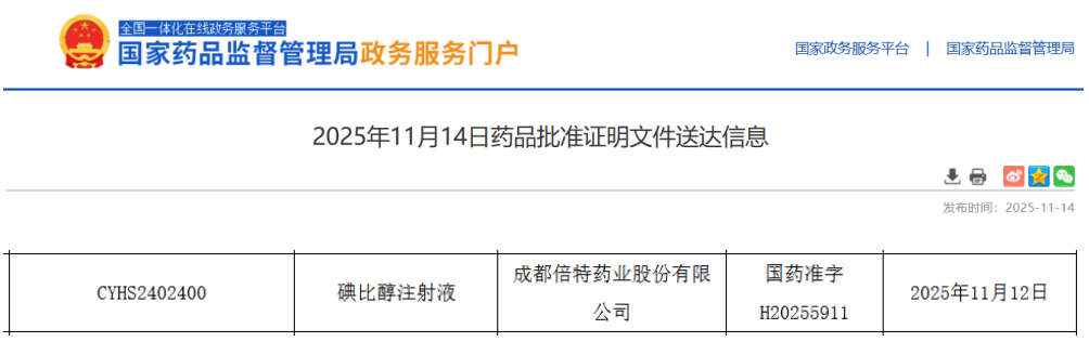 11月14日,据NMPA官网最新公示,成都倍特药业提交的4类注册仿制药碘比醇注射液获批上市,且视同通过一致性评价。至此,倍特药业成为国内第2家获批该品种的药企,国内碘比醇注射液市场形成原研企业与两家国产企业“1+2”的竞争格局。