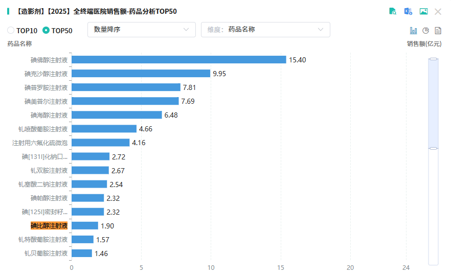 碘比醇注射液是一款畅销造影剂,它主要用于(X线)尿路静脉造影、动脉造影,以及头颅和全身计算机断层扫描(CT)静脉血管数字减影检查,为临床精准诊断提供了有力支持。原研药企法国加柏于2016年成功获批进入中国市场。据摩熵医药数据库统计,该品种市场表现亮眼,2024年销售额接近4亿元,2025年上半年销售额已近2亿元。