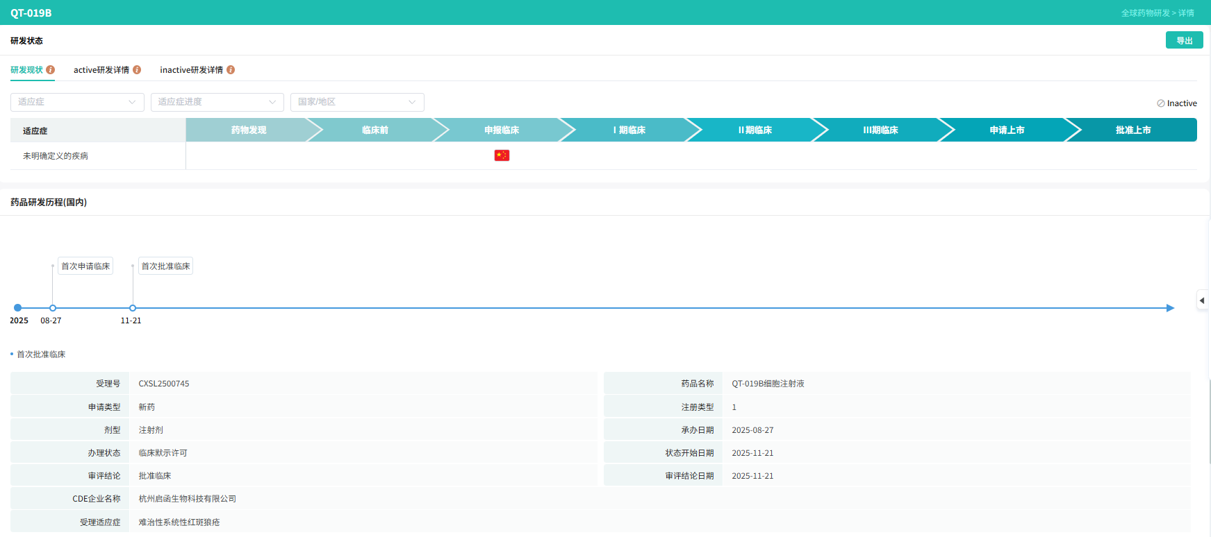 QT-019B针对CD19和BCMA双重靶点,有望满足不同类型自身免疫性疾病的医疗需求,可能适用于诸多与自身抗体相关的疾病。公司将结合自身免疫性疾病患者未满足的临床需求、研究者发起的临床研究(IIT)数据,以及考虑不同适应症的注册路径,将陆续开发包括多发性硬化(MS)、自身免疫性溶血性贫血(AIHA)、特发性肌炎(IIM)等在内的适应症,以满足更广泛患者的医疗需求。