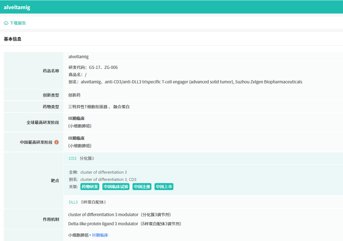 ZG006 是泽璟制药开发的一种靶向两个不同DLL3表位以及CD3的三特异性 T 细胞衔接器。该药的抗DLL3端可以与肿瘤细胞表面不同DLL3表位相结合,抗CD3端可以结合T细胞,进而利用T细胞特异性杀伤肿瘤细胞。