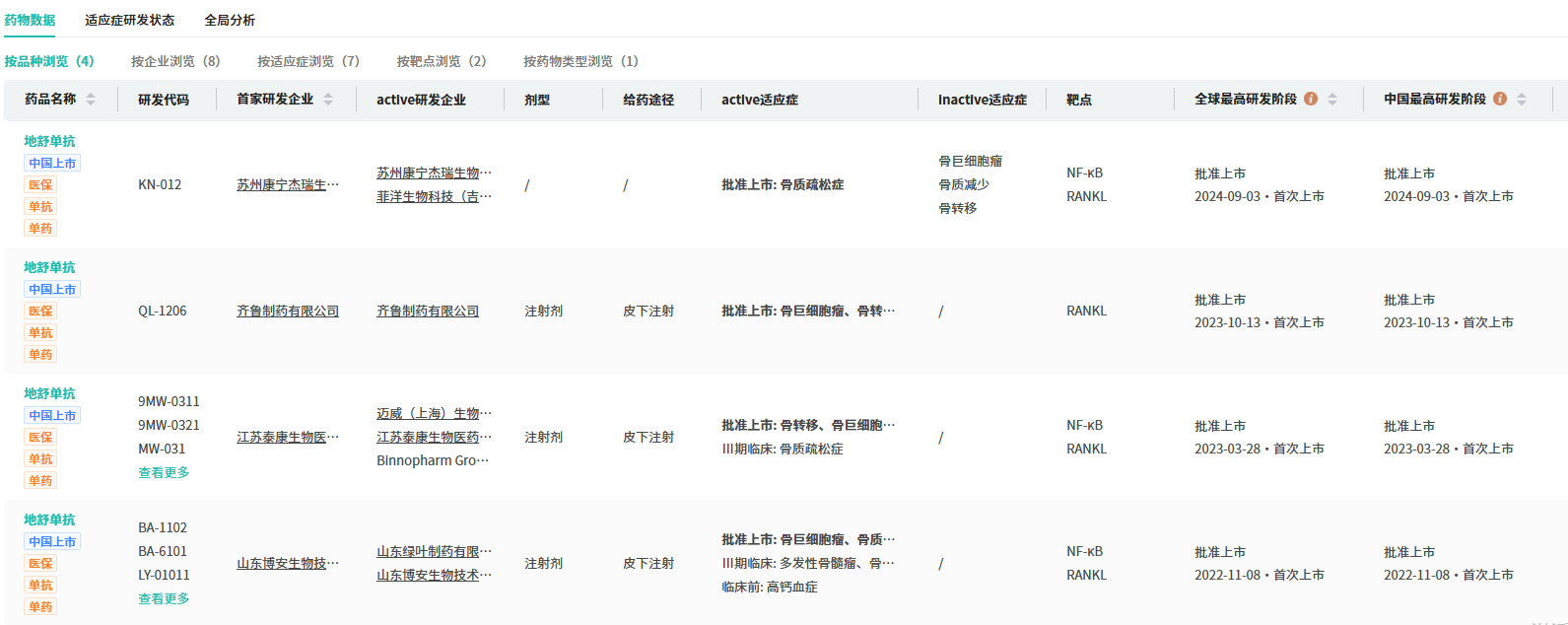 地舒单抗原研药由安进公司研发,该药物于2010年在美国首次获批上市,自此成为骨质疏松治疗领域的重要药物。在国内,原研地舒单抗注射液于2020年前后获批投入市场,且已被纳入医保目录。2024年9月,地舒单抗注射液的上市注册申请获加拿大卫生部受理。根据IQVIA提供的数据,2024年地舒单抗产品在全球的销售额约为74.63亿美元。
