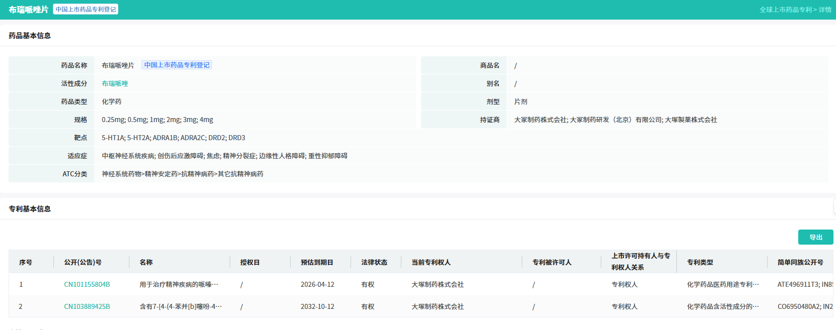 布瑞哌唑在全球年销售额已突破百亿人民币,其核心化合物专利将于2026年4月到期。苑东生物提前斩获国内首仿,成功卡位专利悬崖期,为产品上市后的市场渗透赢得先发优势。