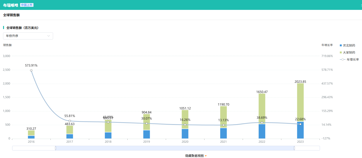 布瑞哌唑是第三代抗精神病药物,由日本大冢制药和丹麦灵北制药共同开发,最早于2015年获FDA批准上市。该药在2023年的全球销售额超20.23亿美元(约合人民币143.13亿元),成为全球最畅销的精神治疗药物之一。