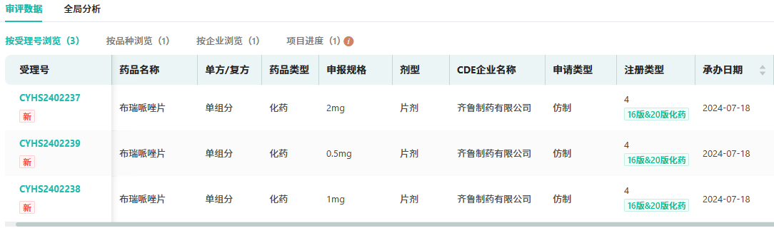 3. 成都苑东生物制药的4类仿制化药吡仑帕奈片,上市申请获受理!