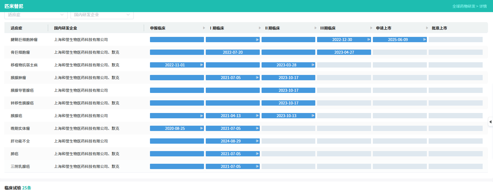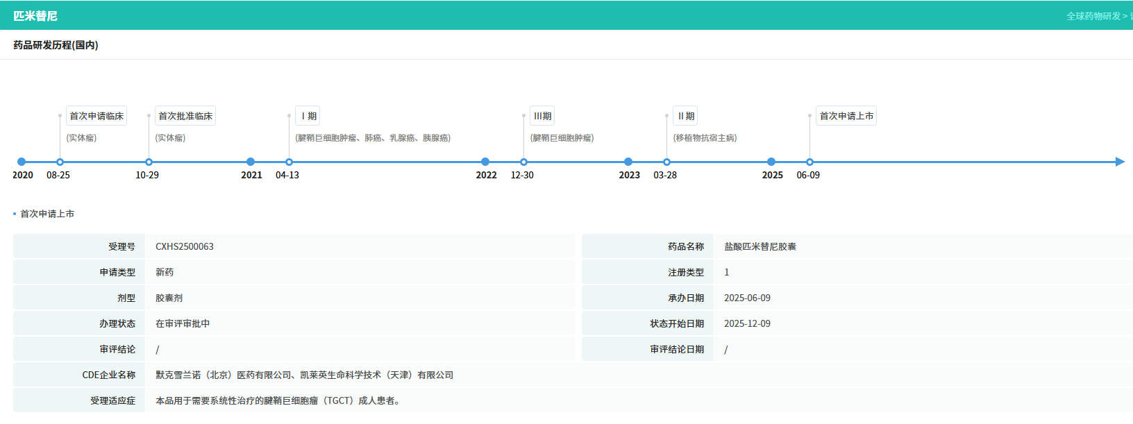 根据协议条款,默克最初获得 匹米替尼 在中国内地、中国香港、中国澳门及中国台湾地区所有适应症进行商业化的独家授权,并拥有全球商业化权利的独家选择权。在2023年,针对移植物抗宿主病的治疗药物或疗法正式进入Ⅱ期临床试验阶段。经过后续的研发与推进,于2025年6月首次提交上市申请。