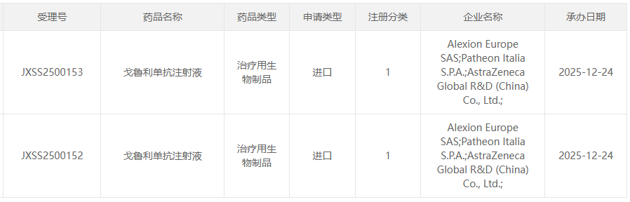 12月24日,据CDE网站显示,阿斯利康的 戈鲁利单抗(gefurulimab)在国内申报上市。根据临床试验进展,推测此次申报的适应症为全身型重症肌无力(gMG)。
