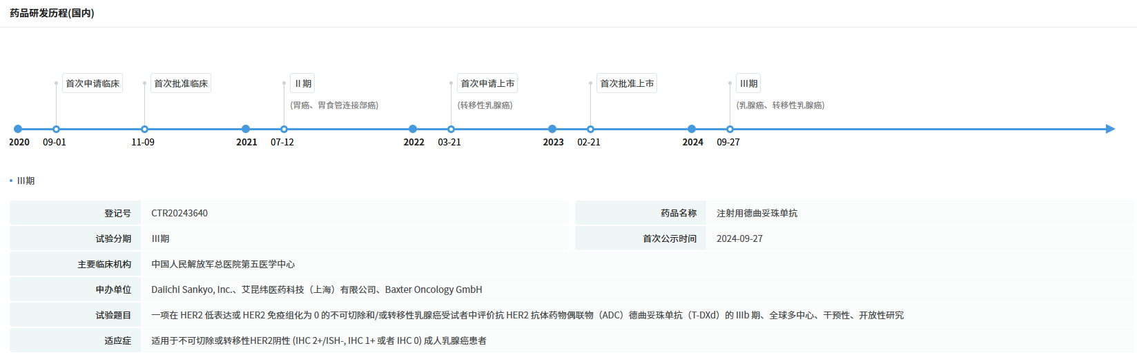 德曲妥珠单抗国内药品研发历程