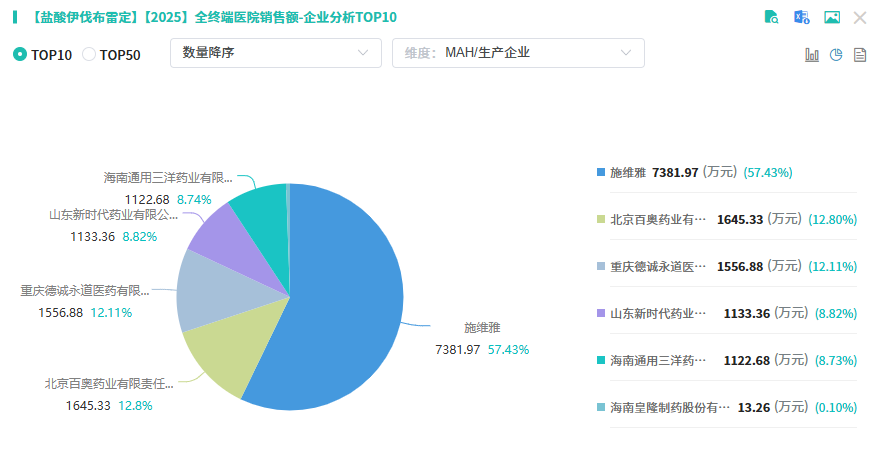 一、院内峰值超3亿元,原研57.43%市场份额领跑