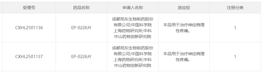 1月12日,据CDE官网显示,成都苑东生物制药按化药注册分类1类申报的新药 EP-0226片 临床试验申请获默示许可,拟用于治疗神经病理性疼痛。这一突破,标志着苑东生物在创新药研发征程上又迈出了坚实一步。