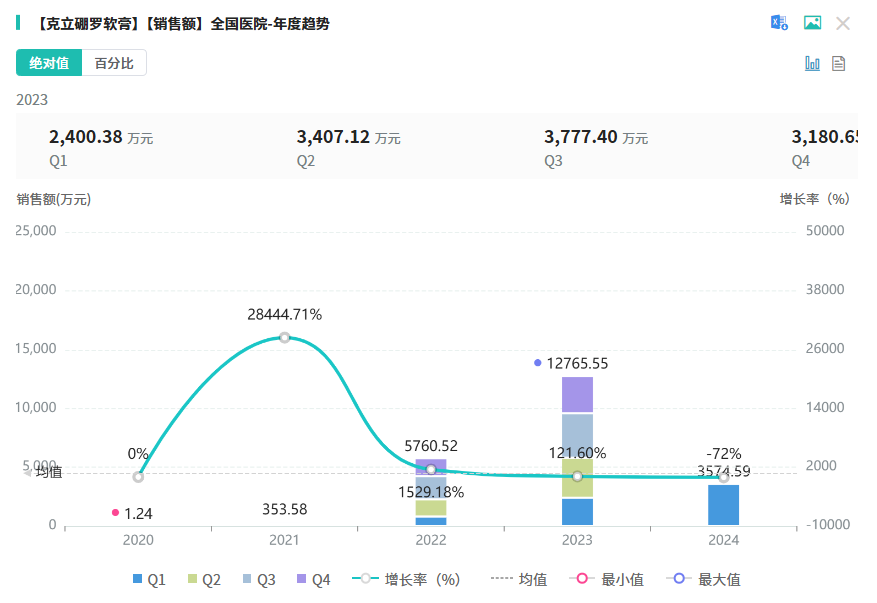 克立硼罗软膏由Anacor制药公司开发,是皮肤病用药明星产品。2020年7月,克立硼罗软膏在中国获批上市,用于治疗2岁及以上患者轻度至重度特应性皮炎,被列入国家《第二批临床急需境外新药》。据摩熵医药数据库显示,克立硼罗软膏在2023年全国院内市场的销售额超1亿元,同比增长超120%。该品种在临床应用广泛,竞争状况良好,市场潜力巨大。