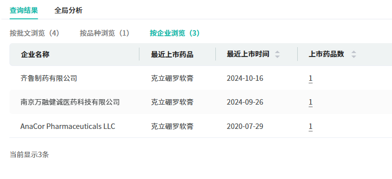 截至目前,克立硼罗软膏在国内目前有2家国内药企获批,2021年首次进入医保谈判目录,今年9月南京万融健诚医药斩获该品种首仿,10月齐鲁制药拿下该品种国产第2家。