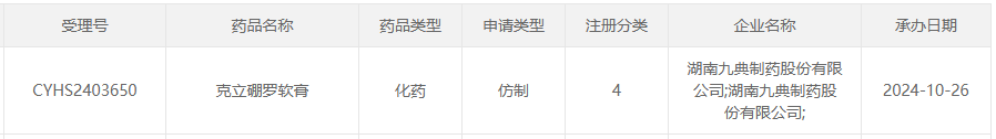 10月26日,据CDE官网显示,湖南九典制药提交的4类仿制药克立硼罗软膏上市申请获受理。近日齐鲁制药顺利获批,拿下国产第2家。据摩熵医药数据库显示,克立硼罗软膏在2023年全国院内市场的销售额超1亿元。