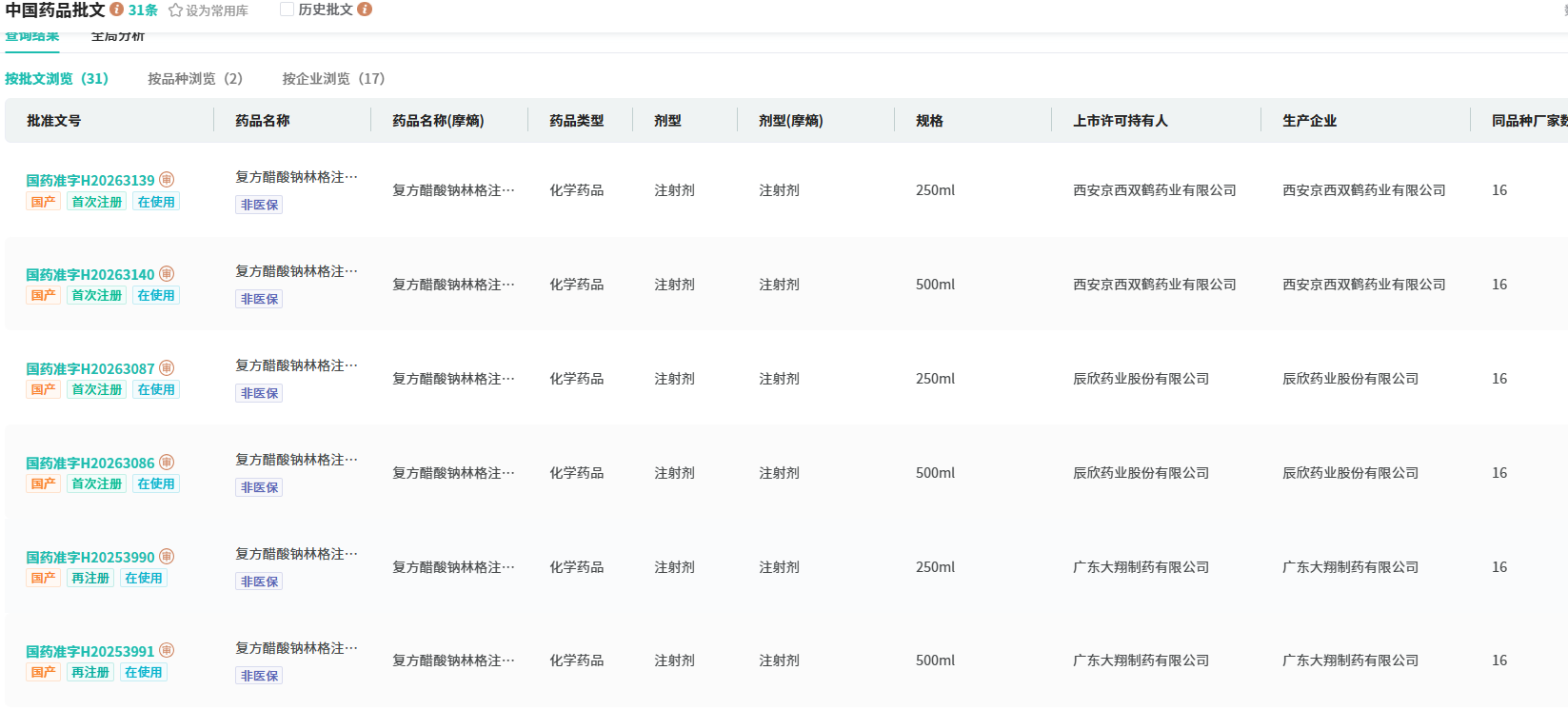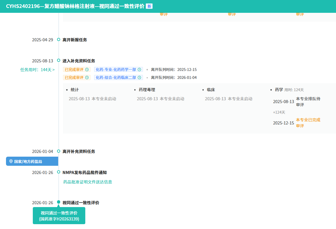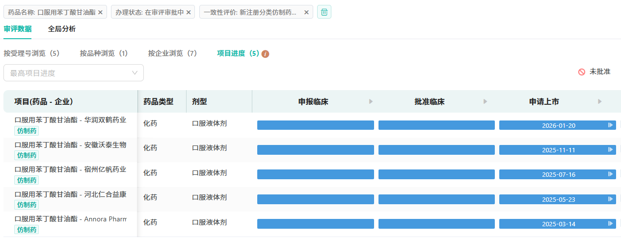1月26日,华润双鹤申报的3类仿制药 复方醋酸钠林格注射液 获批生产并视同过评;1月20日,华润双鹤提交的4类仿制药 口服用苯丁酸甘油酯 上市申请获CDE正式承办,且该品种目前国内仅有原研获批,属独家品种。