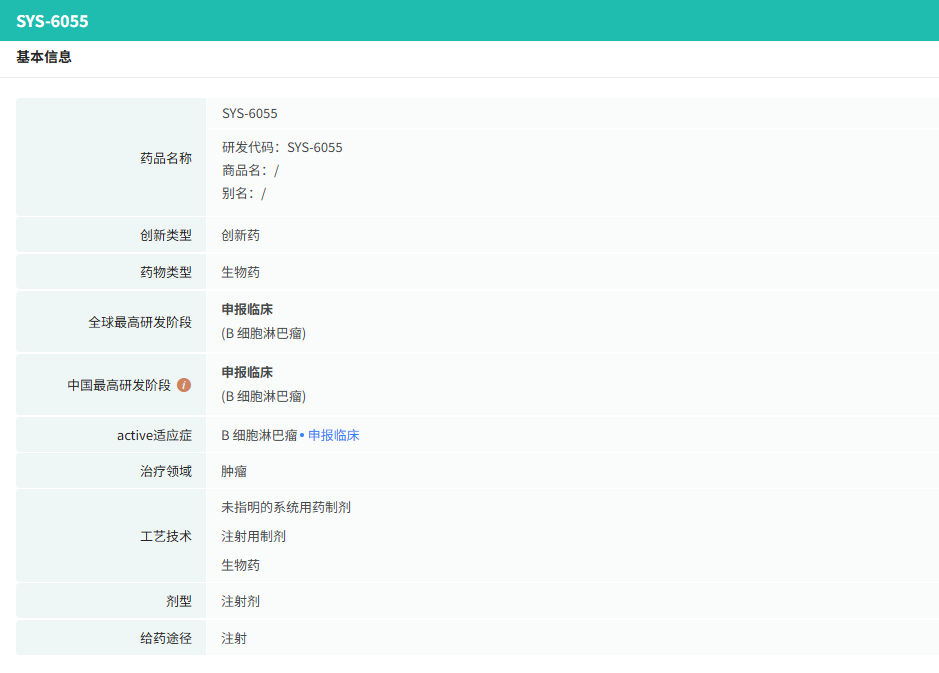 临床前研究表明,SYS6055注射液 在抑瘤效果和安全性方面表现良好,并在成本、可及性和即时性等方面具备潜在优势。本次获批的临床适应症为复发/难治侵袭性B细胞淋巴瘤,此外,该产品还具备用于治疗其他CD19阳性的B细胞恶性肿瘤和自身免疫病的潜力,显示出较高的临床开发价值。