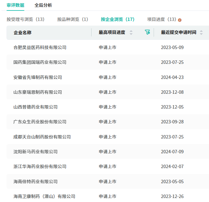 截图来源:摩熵医药(原药融云)中国药品审评数据库