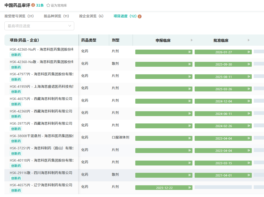从研发进度看,HSK47977片、HSK38008干混悬剂 等多款新药正在开展Ⅰ期临床试验,形成梯队式冲锋态势。