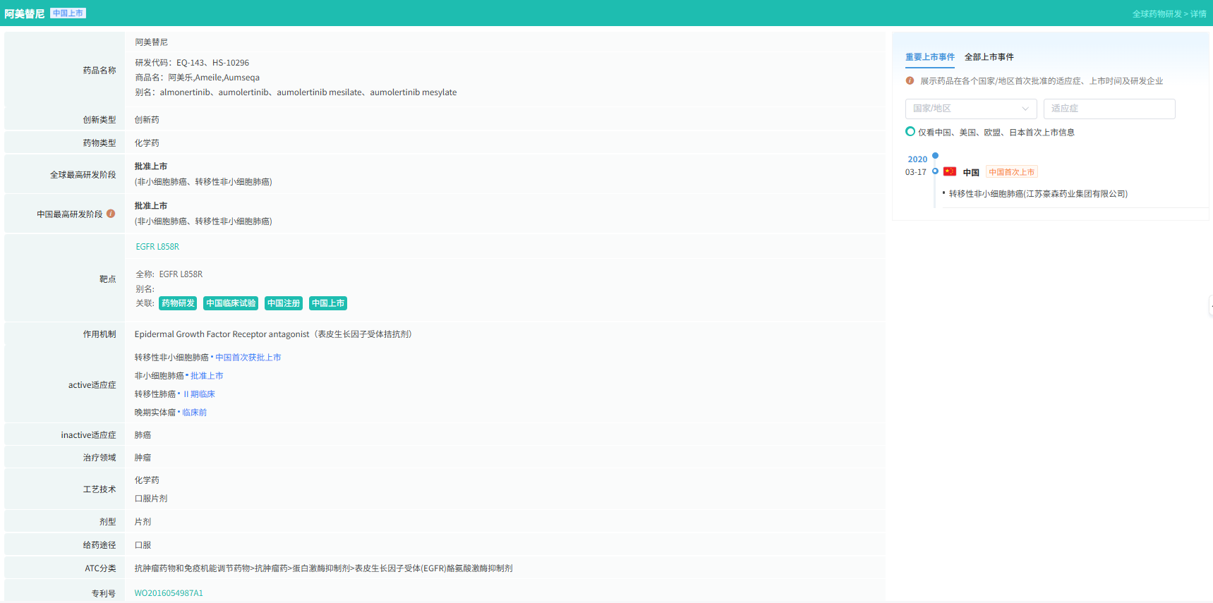据翰森制药新闻稿介绍,在全球化进程方面,阿美替尼 已实现多项阶段性突破: