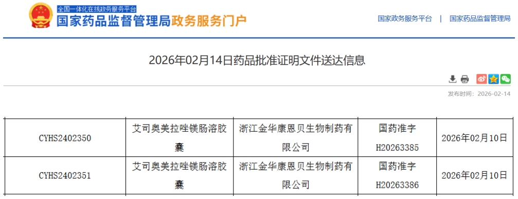 近期,据NMPA官网公示,浙江金华康恩贝生物制药申报的艾司奥美拉唑镁肠溶胶囊正式获批上市,且视同通过一致性评价。这意味着康恩贝在消化系统与代谢类药物板块再下一城,进一步巩固其在胃肠疾病治疗领域的产品矩阵。