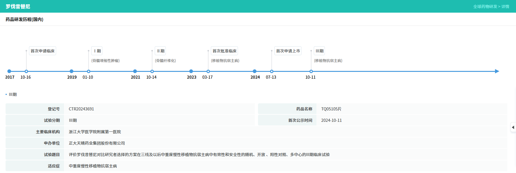 从研发轨迹看,这款“十年磨一剑”的创新药跑出了加速度:2019年启动临床试验,2024年7月提交上市申请,2026年2月顺利获批,本次获批的骨髓纤维化是首发适应症,而针对移植物抗宿主病的新适应症也已经处于III期临床研发中,并在2025年8月被CDE纳入突破性治疗程序;在美国也已获准开展 II 期临床,全球化脚步同步提速。