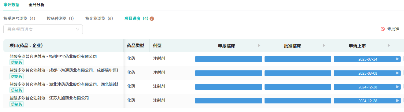 值得注意的是,嗅觉敏锐的竞争者正在逼近。摩熵医药数据显示,扬州中宝药业、江苏九旭药业等6家企业的同品种仿制申请已进入审评阶段。未来一两年,这片原本沉寂的市场或将迅速演变为红海战场,“有无之争”很快将转向“成本与渠道之争”。