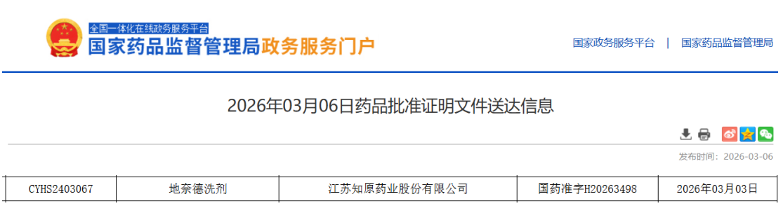 近日(3月6日),据国家药监局发布公告,江苏知原药业的地奈德洗剂顺利获批,为国内首仿。作为皮肤病治疗领域长期位居前列的品种,此次首仿落地,标志着该品种在国内新剂型领域长期空白状态的结束。