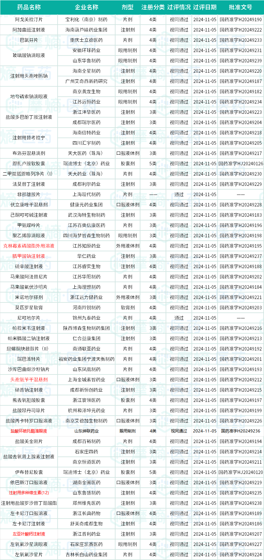 11月05日过评品种(标红为首家过评)