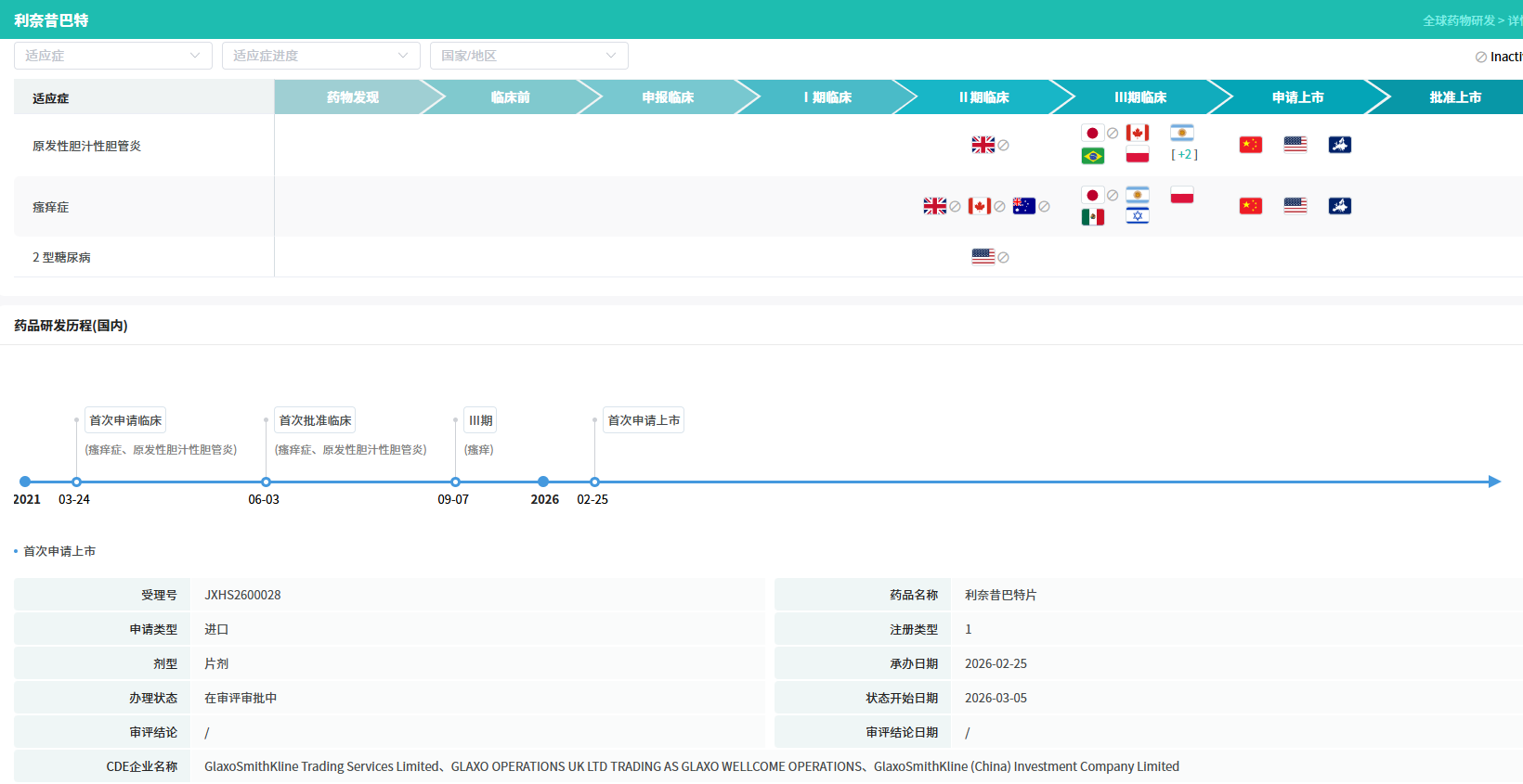 除了在美国获批,利奈昔巴特在欧盟、英国、加拿大和中国的上市许可申请也已提交,正在审评过程中,显示其全球同步开发的布局。