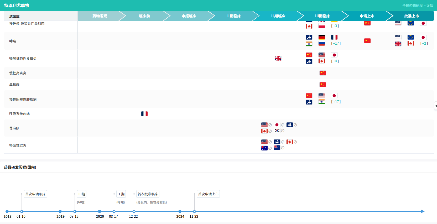 该药于2021年首次获FDA批准,用于治疗重症哮喘,随后在2022年于欧盟和日本获批。2025年10月,其适应症进一步扩展,在美国获批用于治疗12岁及以上患者控制不佳的慢性鼻窦炎伴鼻息肉。此次在中国获批的两项适应症,标志着该创新疗法正式惠及中国患者。
