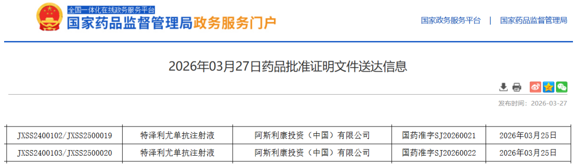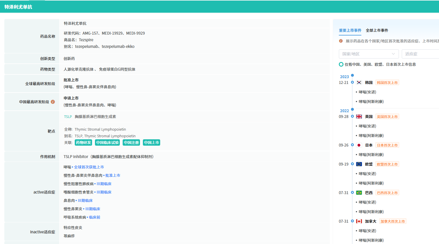 1. 阿斯利康/安进全球唯一TSLP单抗特泽利尤单抗在华上市申请获受理,或成2026年重磅新药!