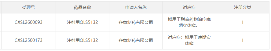 3月31日,国家药监局药品审评中心(CDE)官网公示,齐鲁制药提交的1类新药注射用QLS5132联合用药治疗晚期实体瘤的适应症获得临床试验默示许可。这是该产品继2025年首次获批临床后的又一关键里程碑,标志着齐鲁制药在抗肿瘤创新药领域的布局进一步提速。