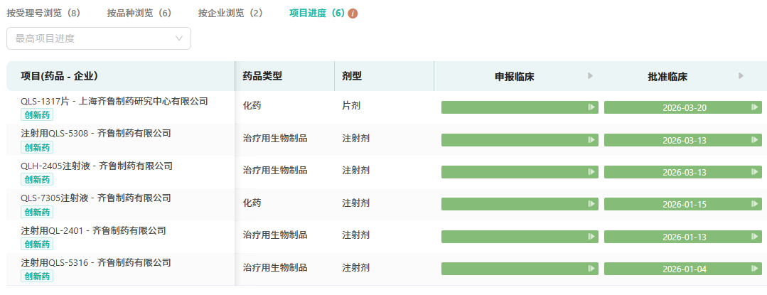 此次QLS5132的进展并非孤例。据摩熵医药数据库统计,今年以来,齐鲁制药(含子公司)已有9款1类新药品种获批临床,其中6款为首次获批,创新管线呈现“井喷”态势。近年来,齐鲁制药坚持高强度研发投入,以临床价值为导向推进差异化创新,已构建起覆盖肿瘤、自免、代谢、心脑血管、中枢神经等领域的丰富管线。
