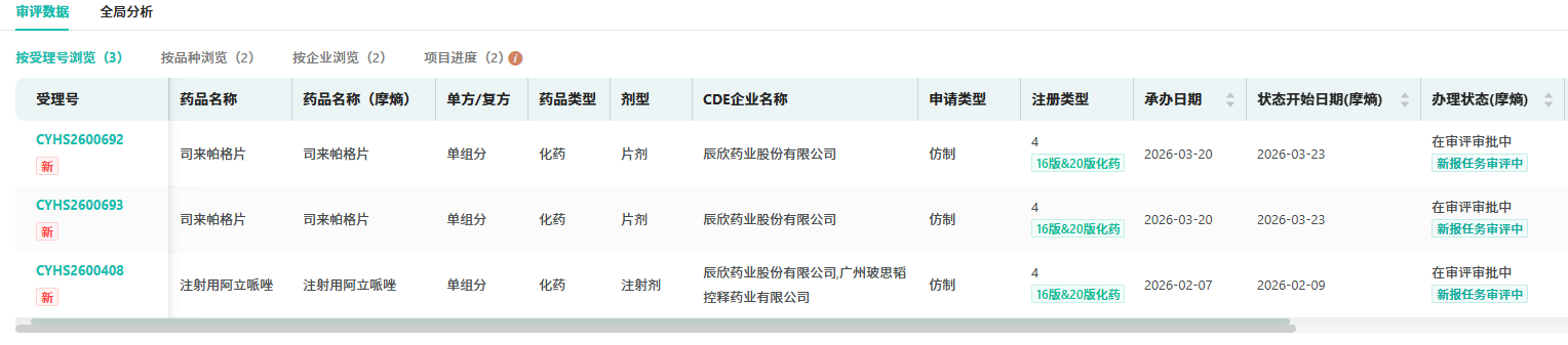 2026年以来,辰欣药业在仿制药申报方面节奏明显加快。截至目前,公司已有2款产品提交了上市申请,均在审评审批中,涵盖神经系统药物、血液和造血系统药物领域。