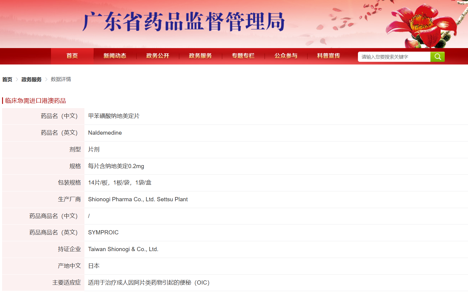 截图来源:广东省药品监督管理局