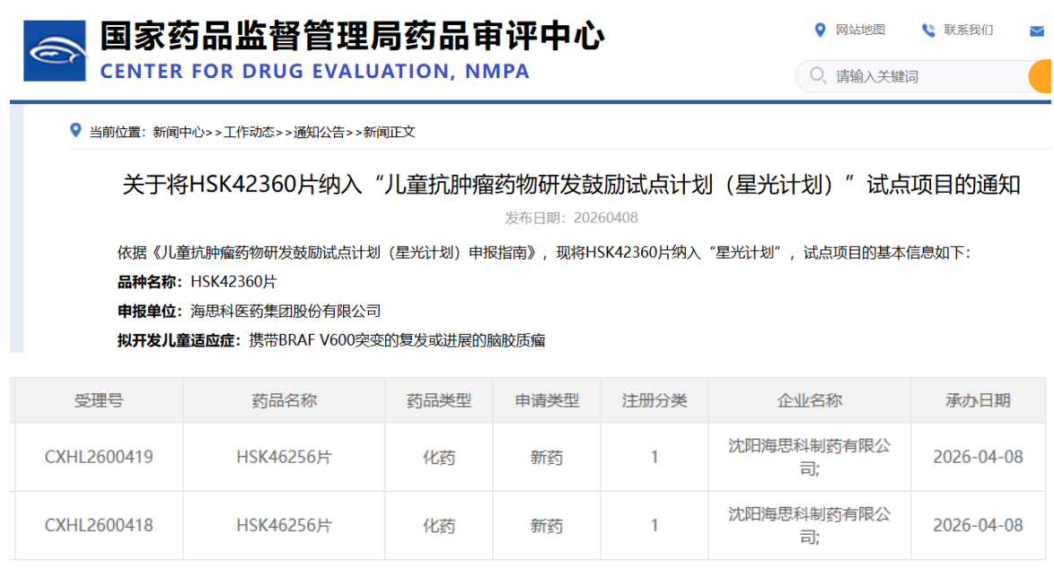 二、聚焦儿童肿瘤,HSK42360入选CDE“星光计划”