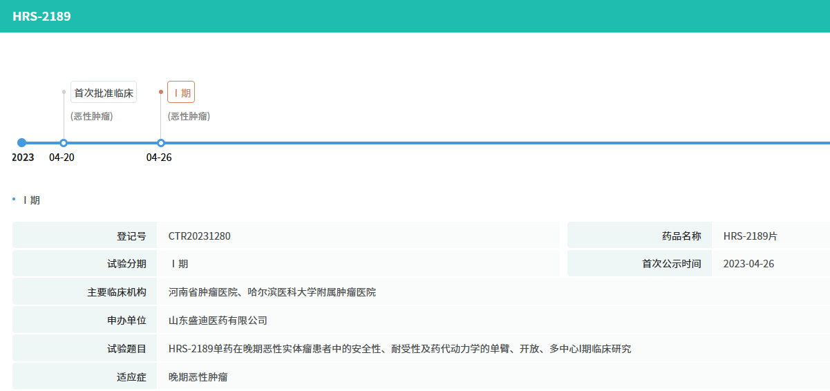 据摩熵医药数据库显示,HRS-2189于2023年4月20日首次获得临床批准。通过调控多种癌基因表达进而发挥抗肿瘤作用,拟用于治疗晚期恶性肿瘤。目前国内外暂无同靶点药物获批上市。截至目前,HRS-2189片相关项目累计已投入研发费用约2,906万元。