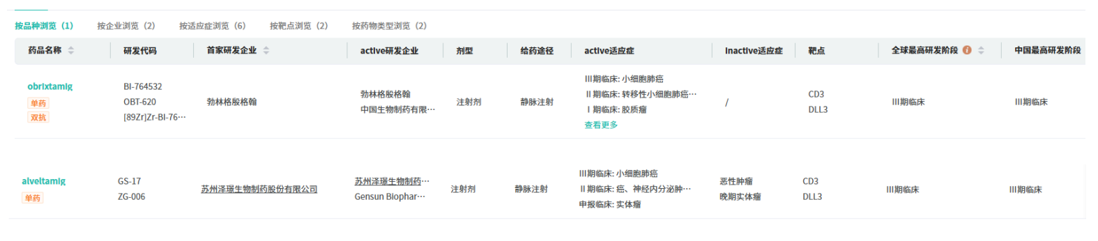 虽然塔拉妥单抗目前仍是全球唯一获批的DLL3/CD3双抗药物,但该赛道的热度正急剧升温。据摩熵医药数据库统计,全球已有10款针对该靶点的抗体药进入临床阶段(含获批临床及以上),其中5款为双抗。