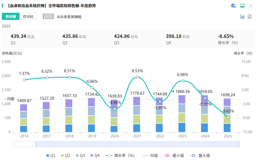FKC289注射液在2026年1月13日首次申请临床,4月10日首次获批临床。该药是一款基于BCMA与CD19的双靶点CAR-T细胞治疗产品,旨在进一步提升CAR-T疗法在复杂血液系统疾病及相关适应症中的治疗效果,据摩熵医药数据库显示,血液和造血系统药物在2025年全终端医院市场的销售额超1600亿元。