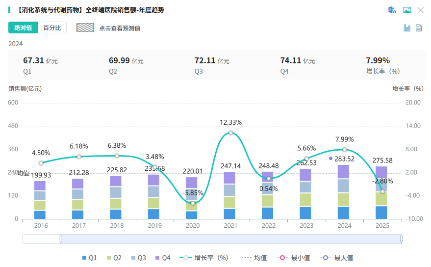 双苓止泻颗粒是太极集团独家品种双苓止泻口服液改剂型改良研发而成,属于中药改良型新药。该药品拟定功能主治为清热化湿、健脾止泻,适用于湿热内蕴、脾虚失健引发的小儿腹泻,症状表现为水样或蛋花样粪便,可伴有发热、腹痛、口渴、尿少、舌红等情况;轮状病毒性肠炎出现上述证候者也可使用。据摩熵医药数据库显示,2025年中成药 - 消化系统与代谢药物在全终端医院的销售额超270亿元。此次双苓止泻颗粒推进临床试验,有望助力太极集团在这一潜力市场开拓新的增长点。